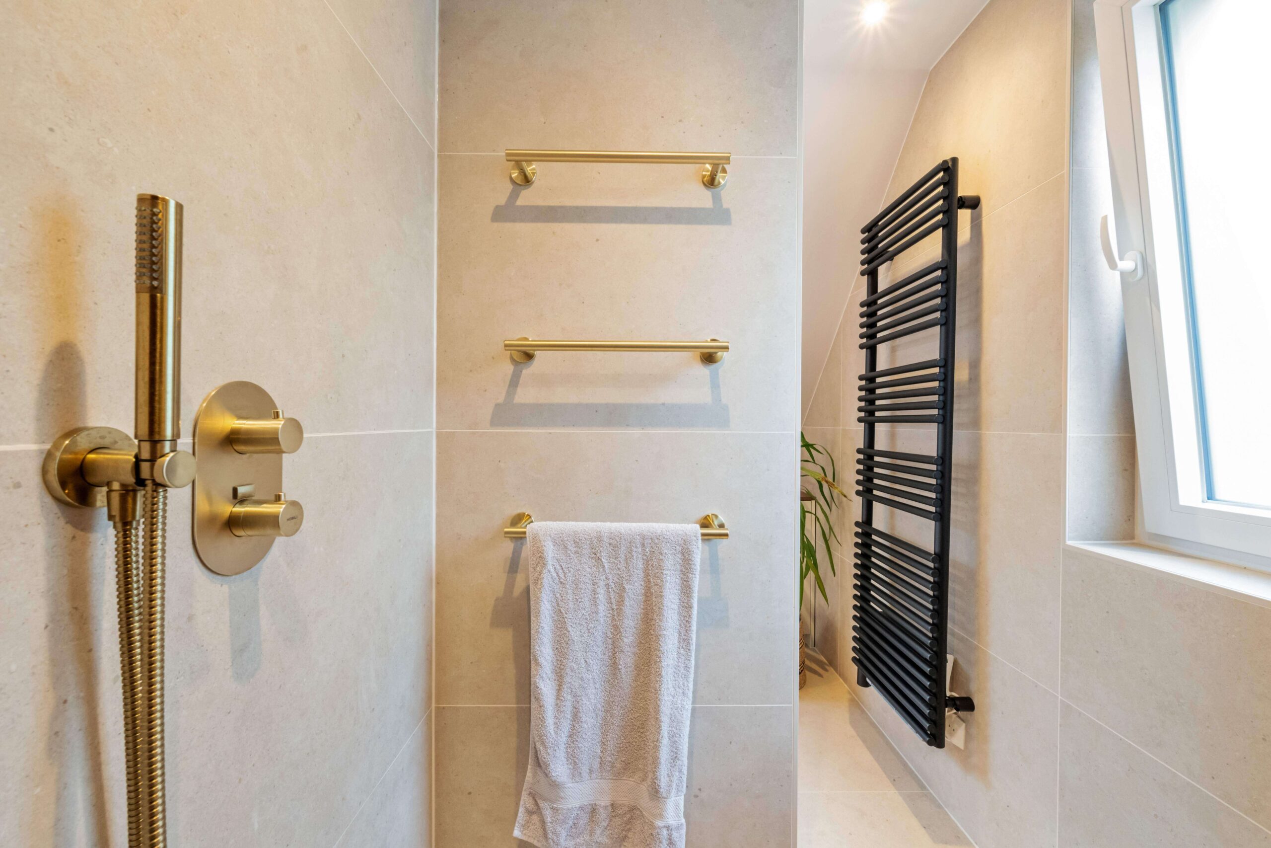Het resultaat is een badkamer die warmte, functionaliteit en een vleugje luxe perfect weet te combineren.
